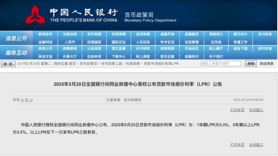 5月20日早间,中国人民银行授权全国银行间同业拆借中心公布,LPR两个品种报价整体下调10个基点(BP):1年期LPR由3.1%下调至3.0%,5年期以上LPR由3.6%降至3.5%。与此同时,头部银行纷纷跟进全面下调各类存款挂牌利率。